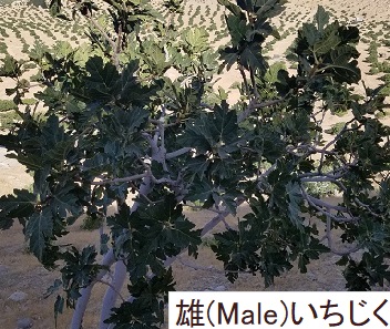 ペルシャ産天日干し白いちじくは原種で小振り、雌株だけで結実せず必ず雌株と雄株木が必要です。エスタハバン周辺で伝統的に栽培しています。木は雌株と雄株は分かれています。雌株木と雄株の木は見た目は多少違います。雄株の葉っぱは、雌株より小さいと木自身も背が低いです。エスタハバンの農場では同じ農場で雌株と雄株木栽培農場はありますが一般てき雌株と雄株農場は別々で専門かに栽培します。